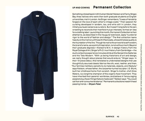Established in 2016, Permanent Collection is a line of objects and homeware based on historical and contemporary originals. Permanent Collection collaborates with celebrated designers and craftspeople in the United States, Europe and Japan to produce small runs of new products using high quality materials and unique processes. Permanent Collection offers understated yet indispensable pieces that will never go out of style.